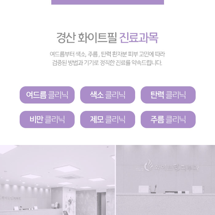 이처럼 가을에는 미백, 탄력, 건조함으로 인한 피부결 문제 등 여러 가지 트러블이 생기기 쉽기 때문에, 평상시 홈케어 관리 만으로 피부가 나아지지 않을 수 있습니다. 그래서 복합적으로 피부관리를 할 수 있도록 여러 가지 성능이 있는 시지 피부과 레이저나 여러 시술의 도움받는 것이 좋습니다.